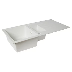 1.5 Bowl Plastic & Resin Kitchen Sink & Drainer White Reversible 1000 x 500mm