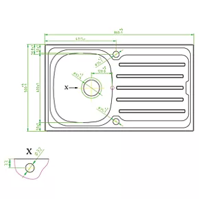 1 Bowl Stainless Steel Kitchen Sink & Drainer 860 x 500mm