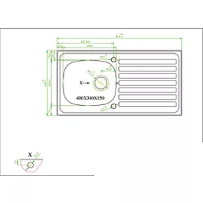 1 Bowl Stainless Steel Kitchen Sink & Drainer 940 x 490mm