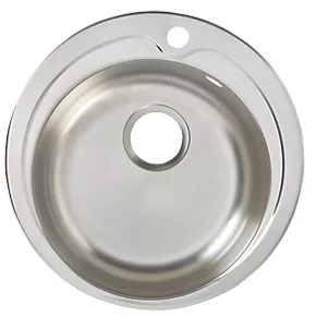 Compact, stainless steel, round kitchen sink with 1 tap hole. Perfect for tight spaces.