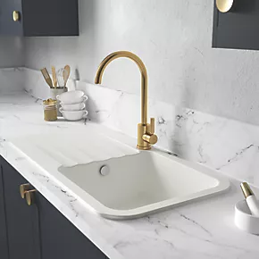 Abode Dune 1 Bowl Granite Composite Kitchen Sink Frost White Reversible 1000 x 500mm