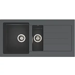 Abode Xcite 1.5 Bowl Granite Composite Kitchen Sink Black Metallic Reversible 1000 x 500mm