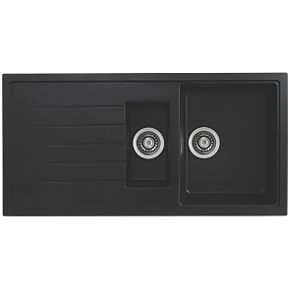 Bristan Quartz 1.5 Bowl Resin Composite Kitchen Sink & Reversible Drainer Black Left or Right-Handed 1000 x 500mm