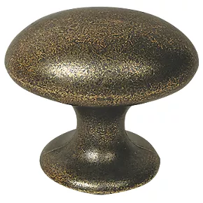 Traditional oval cabinet knob with an antique brass effect finish.
