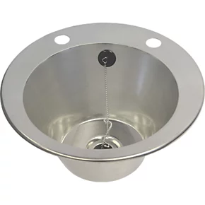 Washbasin for insetting into a worktop. Manufactured from grade 1.4301 (304) stainless steel in a polished satin finish. 32mm waste outlet, overflow hole and two tap holes. Suitable for basin taps only. Supplied with fixing kit.